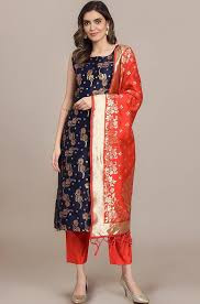 Experience elegance and comfort with VredeVogel Women's Cotton Silk Blend Straight Kurta paired with Trouser Pant and Banarasi Silk Dupatta. This ensemble combines traditional charm with contemporary style, offering a sophisticated look for any occasion. Elevate your wardrobe with this exquisite set that exudes grace and versatility.